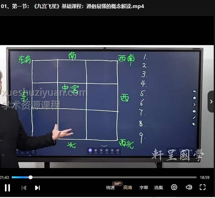轩呈国学赵倍功2023九宫飞星 课程23集视频,利用九宫飞星图来测事,占断吉凶。