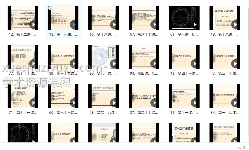 茧化派占星夜观天象80集,了解天体的运行对人类性格及命运能量影响的重要性,目录部分如下方,全面系列带你系统的学习和了解占星。