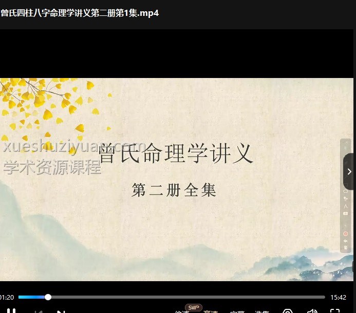 曾氏曾勇易学新视频四柱八字100集【例题解读】,很好的命理课程,但视频有飘花水印,无法去除,介意的请不要下载。