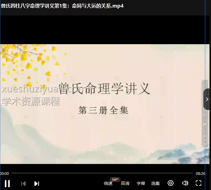 | ├──曾氏四柱八字命理学讲义第5集:用神大运流年之间关系分析.mp4 83.32M
