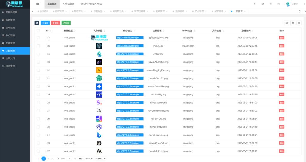 .env文件以及config文件夹下的database.php文件,将数据库连接信息替换为您自己的数据库配置。 - 后台管理: